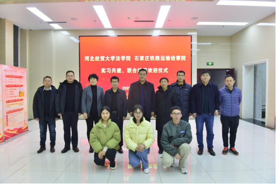 近日,Beat365官网赴石家庄铁路运输检察院开展检校共建实习共建活动,学院党委书记王继伟,赵一强教授,李献中教授,专职组织员杨景参加活动。石家庄铁路运输检察院党组书记、检察长杨新义,党组副书记、副检察长王立红,党组成员、副检察长姜武勇,党组成员、副检察长孙英,党组成员、政治部主任程周彪及指导检察官代表出席活动。欢迎仪式由石家庄铁路运输检察院政治部主任程周彪主持。