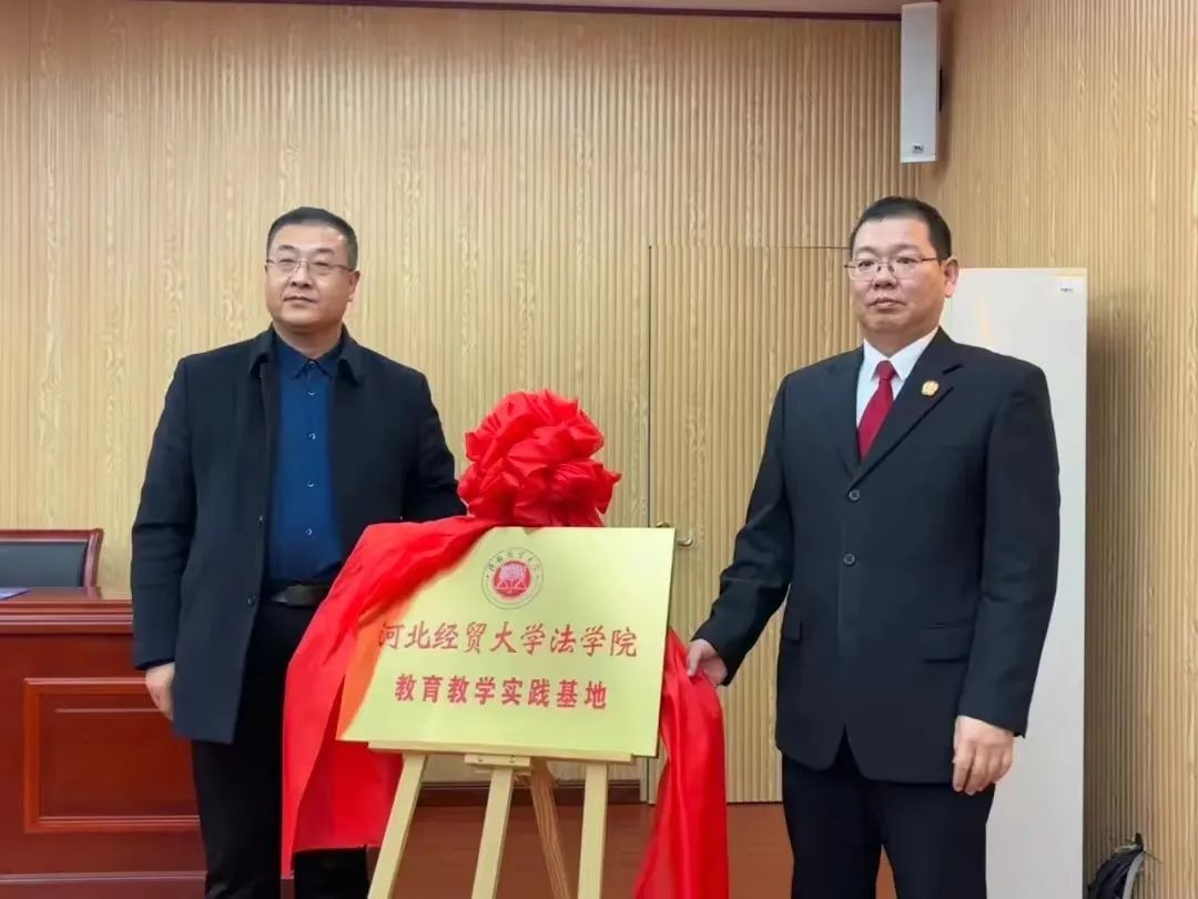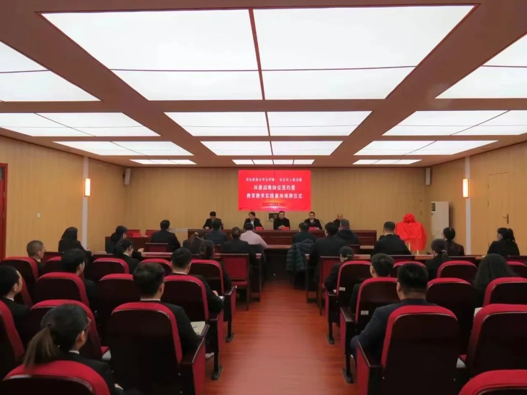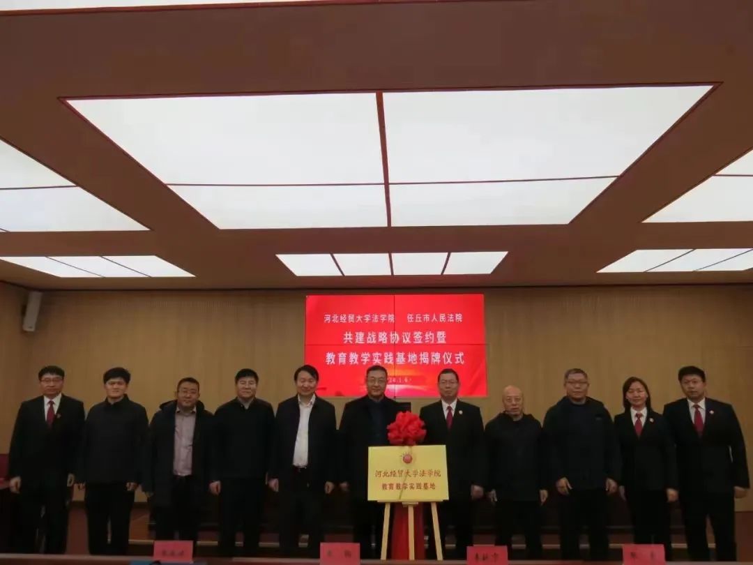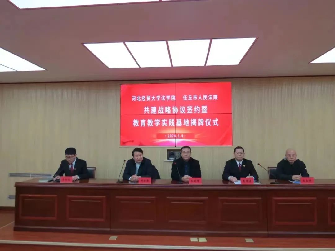 2024年1月4日下午,Beat365中文官方网站与任丘市人民法院共建战略合作签约暨Beat365中文官方网站教育教学实践基地揭牌仪式在任丘法院举行。任丘法院党组书记、院长栗保东,政治部主任肖雨舟,专职审委会委员王艳,专职审委会委员刘建奎,Beat365中文官方网站党委书记王继伟、院长胡海涛、宋忠胜教授、李献中副教授、王韬副教授、院务助理张亮副教授、学工办主任陈运涛和任丘法院各部门负责人,调研团队、刑庭全体干警参加仪式。
