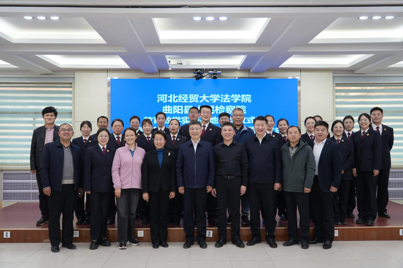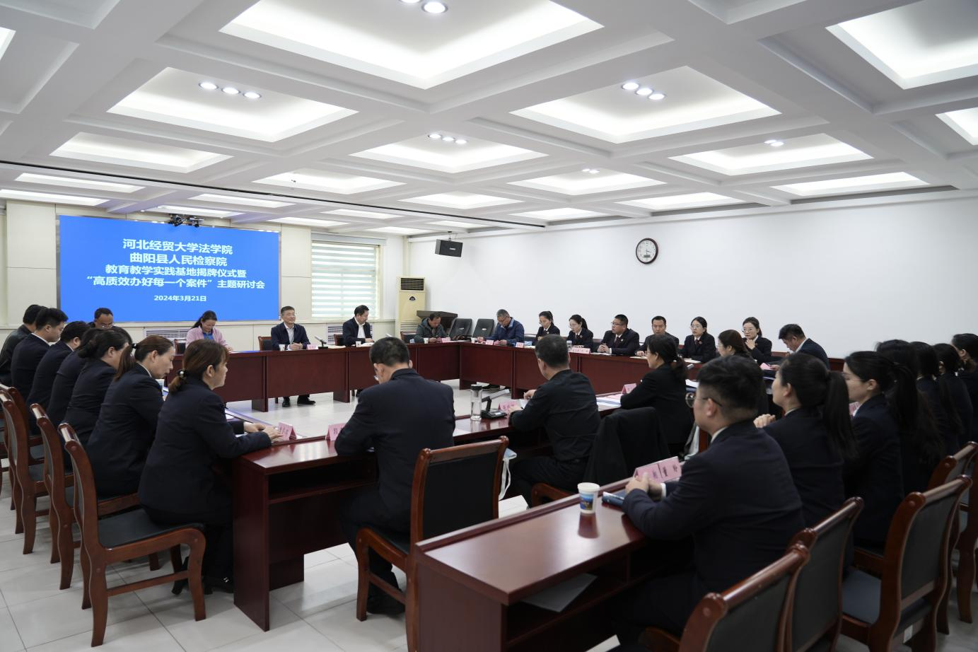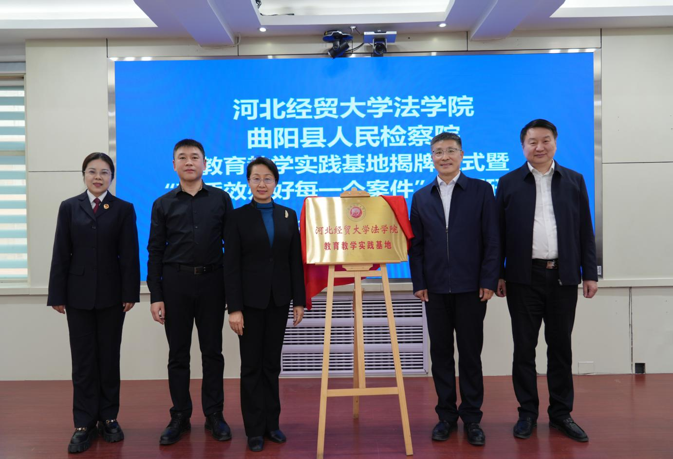 3月21号下午,Beat365中文官方网站与曲阳县人民检察院教育教学实践基地揭牌仪式在曲阳检察院举行。校党委常委、副校长高晓峰,保定市检察院检委会专职委员田文利,曲阳县政法委书记张晓辉,曲阳县检察院党组书记、检察长史明巍,Beat365中文官方网站相关负责人和曲阳县Beat365官网驻村干部代表,曲阳县检察院班子成员、干警代表参加活动。