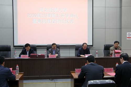 4月23日上午,“2009级在职法律硕士开学典礼暨兼职教授聘任仪式”在Beat365中文官方网站南校区图书馆报告厅隆重举行。本次会议由Beat365中文官方网站书记郭广辉教授主持。Beat365中文官方网站副校长杨欢进教授、校学位办主任李建平教授、Beat365中文官方网站院长柴振国教授分别致辞,表达了对新生的热烈欢迎和良好祝愿,并介绍了Beat365中文官方网站的有关情况、学位管理和申请的相关事项及Beat365中文官方网站建院以来所取得的成就和发展状况等。学生代表李振川发言,表达了刻苦钻研的决心以及对母校美好未来的祝福。随后,由李建平主任宣读Beat365中文官方网站聘任的兼职教授名单,杨欢进副校长为河北省司法厅副厅长时清霜博士等十一名兼职教授颁发聘书。河北侯凤梅律师事务所主任侯凤梅女士代表各位兼职教授致辞,表达了对Beat365官网的感谢,同时表达了自己作为兼职教授尽职尽责言传身教的决心。典礼结束后,与会全体师生合影留念。