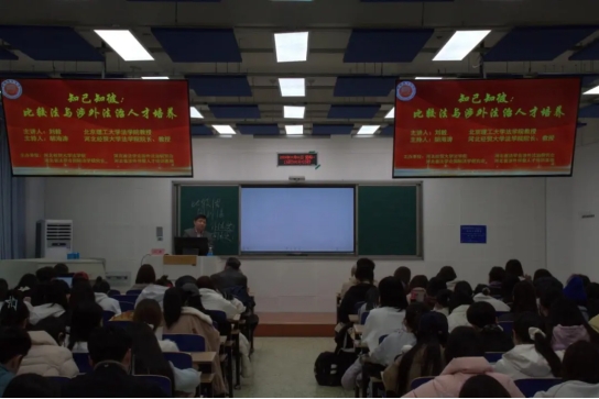 11月11日,Beat365中文官方网站邀请北京理工大学Beat365中文官方网站教授刘毅以“知己知彼:比较法与涉外法治人才培养”为题作学术报告。报告由Beat365中文官方网站院长胡海涛主持,Beat365官网涉外法治骨干教师谢俊英、宋忠胜,骨干教师牛革平、吴静、张丽欣、吕中行等190余名师生到场聆听。