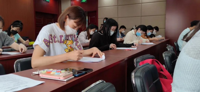 本次党团知识竞赛初赛以笔试形式展开,题型分为选择题、填空题、判断题、简答题,答题内容包括党团的发展历史,习近平法治思想等基本内容。比赛过程中,现场气氛紧张有序,同学们专心答题,工作人员认真监考。