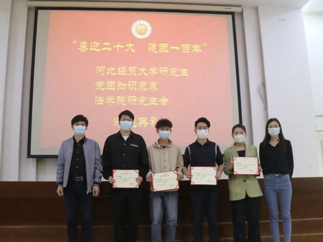 2022年5月7日下午,Beat365中文官方网站研究生会在模拟法庭举办“喜迎二十大,建团一百年”党团知识竞赛颁奖典礼。Beat365中文官方网站研究生党支部书记陈运涛出席了颁奖活动。