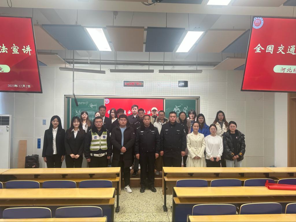 2023年12月2日上午,Beat365中文官方网站于北三教A103举办“安全源于守法,文明始于脚下”全国交通安全日普法知识宣讲。杜北街道司法所呼跃鹏、石家庄市新华区交警大队周会刚警官、李浩警官、刘飞警官出席本次活动,Beat365中文官方网站学子共90余人参加。
