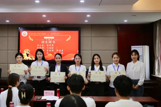 大会伊始,研究生学生会代主席团成员及各部门负责人对新成员的加入表示热烈欢迎,随后全体师生庄严肃立、齐唱国歌。会议现场解思语为研究生学生会代主席团成员及各部门负责人颁发聘书。这既是对受聘成员过往工作的认可与肯定,更是对其未来履行职责、推动研究生会发展的殷切嘱托,未来一年,受聘成员将共同履行服务职责,助力研究生学生会各项工作稳步推进。